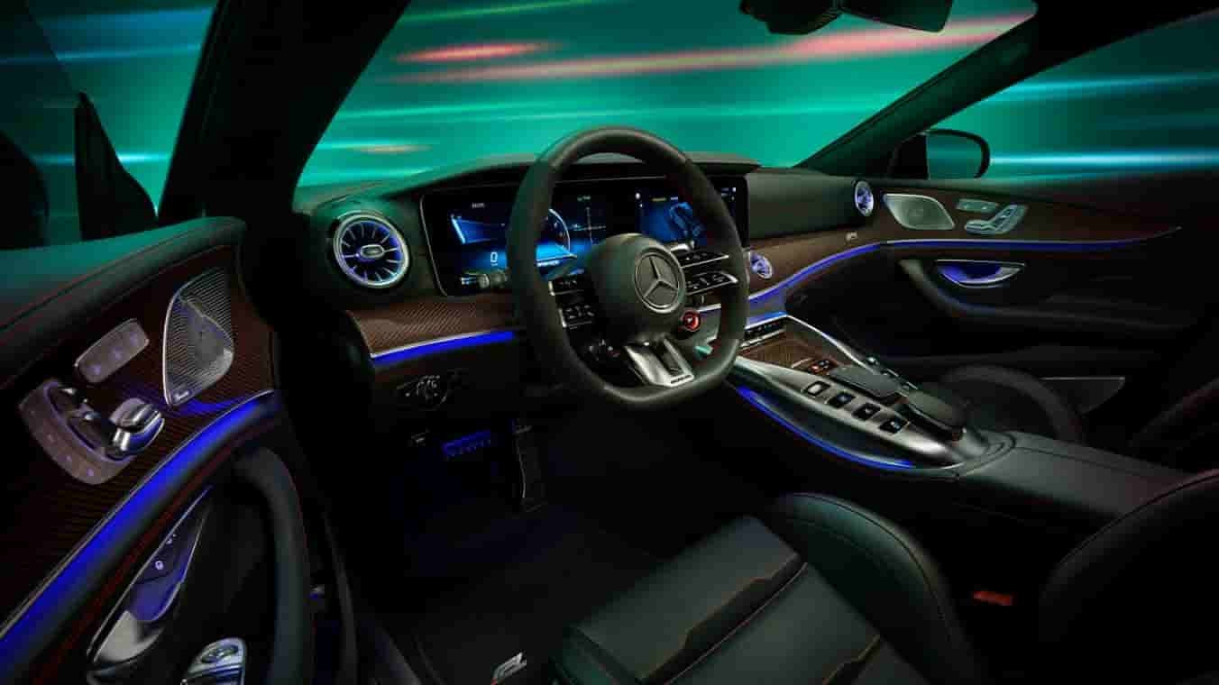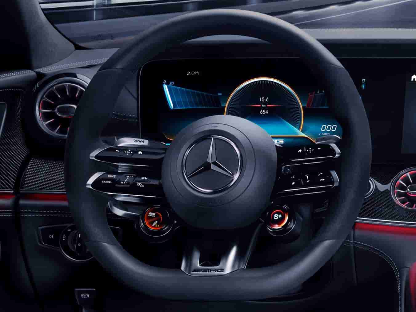 The AMG GT 63 S E comes with a redesigned front bumper modeled after the two-door GT, new badging, new exhaust outlets, and a new alloy wheel design exclusive to the PHEV (plug-in hybrid electric vehicle). There is also an AMG-specific air suspension, rear-wheel steering, and carbon ceramic brakes. It also gets four levels of regenerative braking with one-pedal-driving capabilities in certain driving situations.